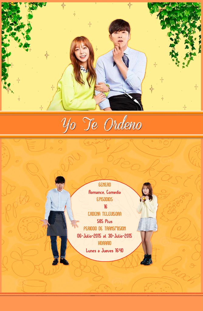 ¿Puede un hombre divorciado con el corazón roto aprender a amar de nuevo? Yeo Gook Dae (Jung Yunho) es un talentoso chef que esconde su corazón roto después de su divorcio detrás de su actitud insolente. Dirige una Dosirak (lonchera) Tienda de comida hecha en casa, donde crea deliciosas comidas para quitarse la angustia de su cabeza. Cuando conoce a la desempleada Park Song Ah (Kim Ga Eun) en su tienda, al instante comienzan una relación de disputas. ¿Se darán cuenta Song Ah y Gook Dae que a pesar de sus riñas están hechos el uno para el otro? "Yo Te Ordeno" es una serie dramática de Corea del Sur de 2015 dirigida por Ahn Gil Ho. Se basa en una novela web del mismo título de Plad